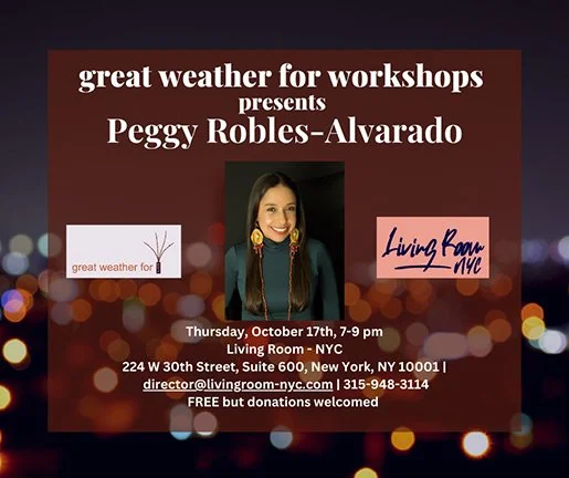 We are excited to bring you our series “great weather for Workshops” at the amazing Living Room Gallery in New York City. These workshops will be generative workshops that happen each month at 7:00 pm, each with a fabulous guest facilitator to take your craft to a new and unexpected place. Hosted by Thomas Fucaloro.